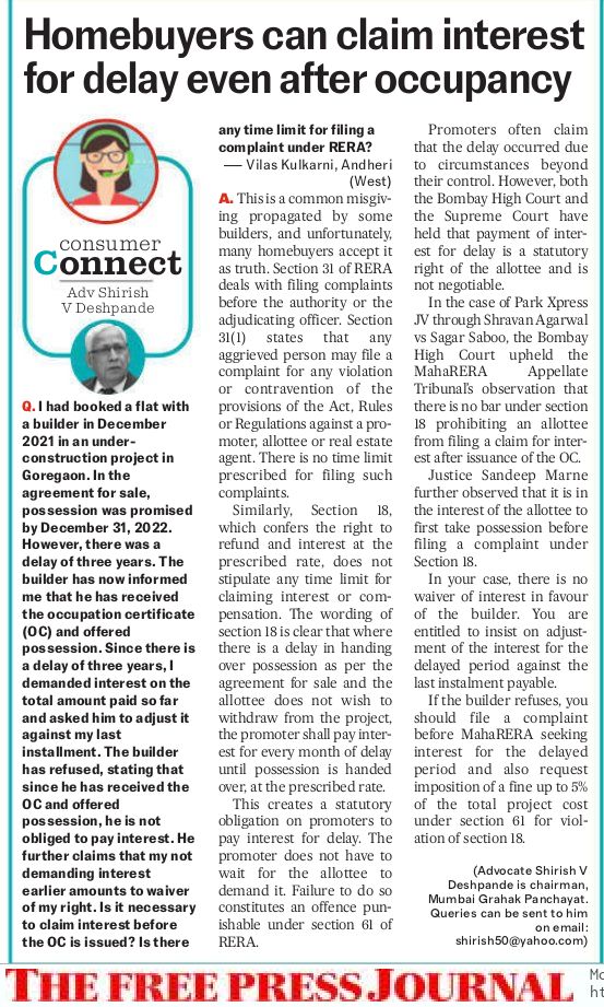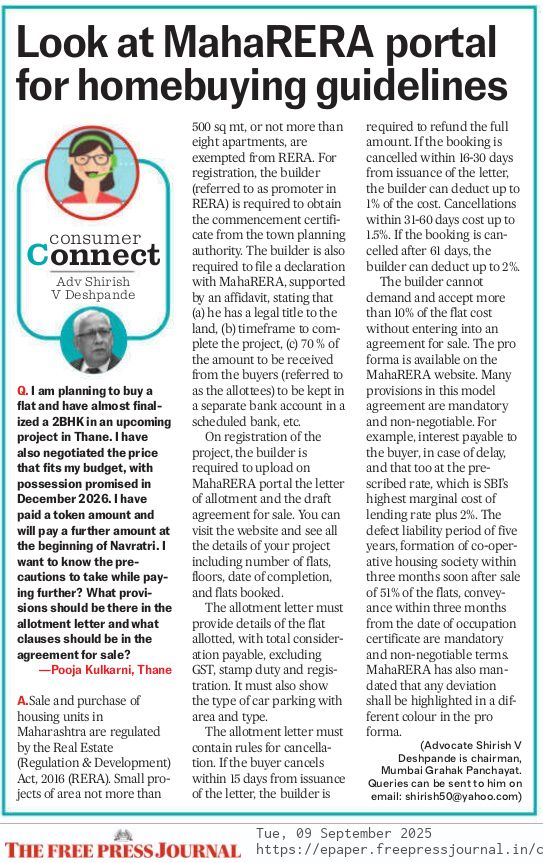 FPJ Impact: Mumbai Grahak Panchayat Urges MahaRERA to Blacklist, Penalise Developers in Deregistered Housing Projects